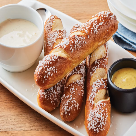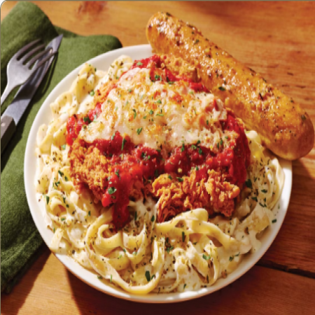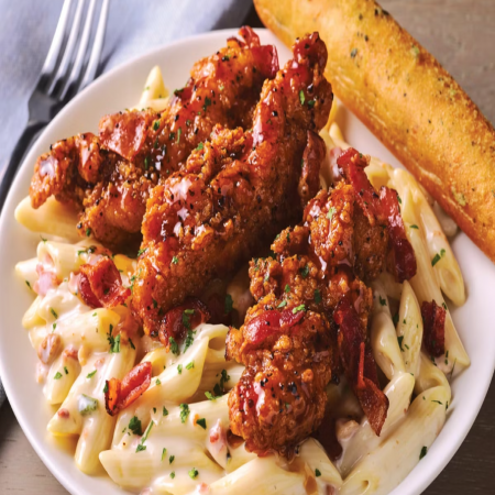 There's a pasta for everyone, whether you're in the mood for our Classic Broccoli Chicken Alfredo or creamy Four Cheese Mac and Cheese with Honey Pepper Chicken Tenders. Plus, all our pastas are served with our signature breadstick.