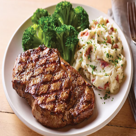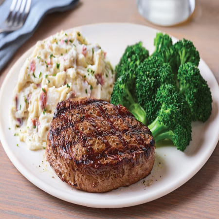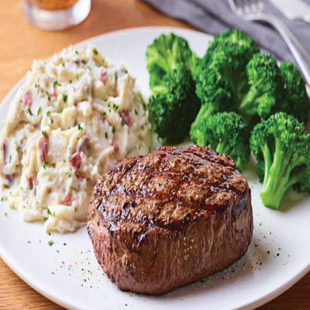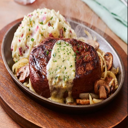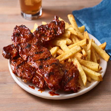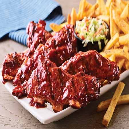 Treat yourself to our expertly cooked, perfectly seasoned Steaks and Ribs. Each juicy cteak is grilled to your liking, and our Double-Glazed Baby Back Ribs are slow-cooked for that fall-off-the-bone perfection. Served with two (2) classic sides.