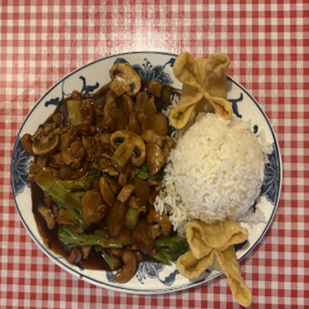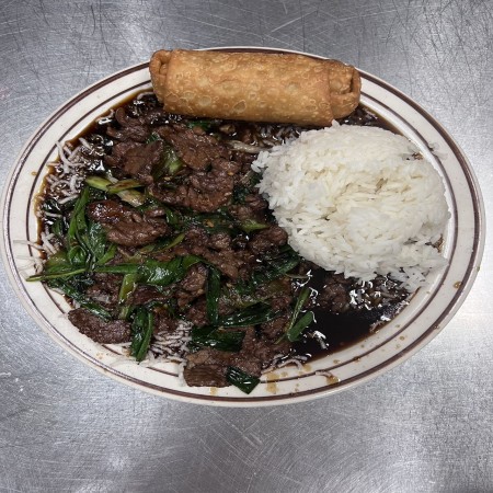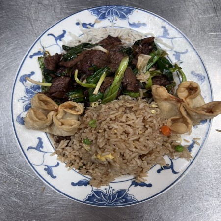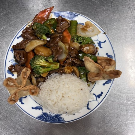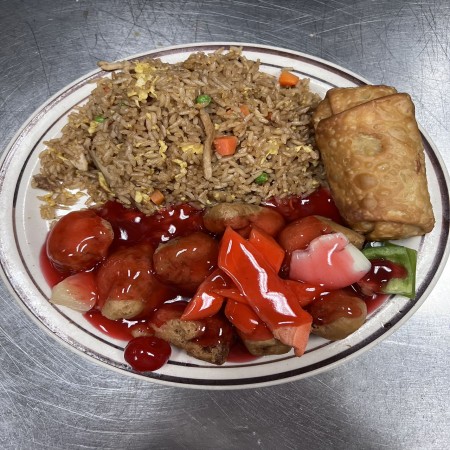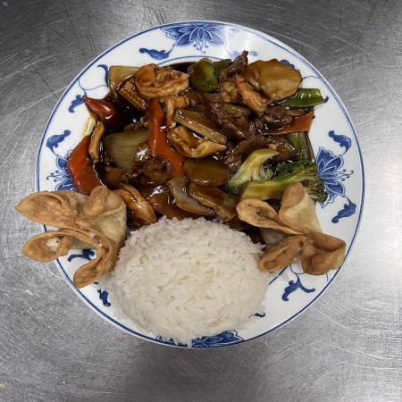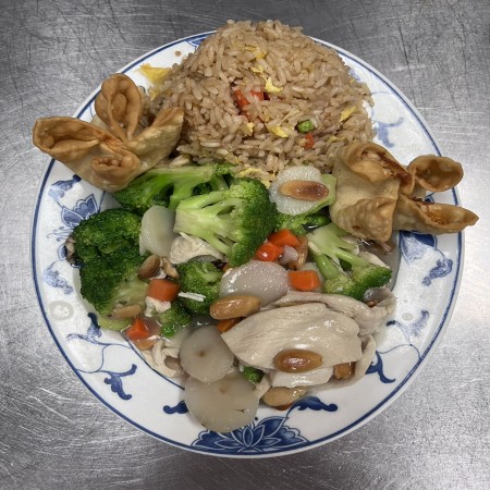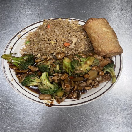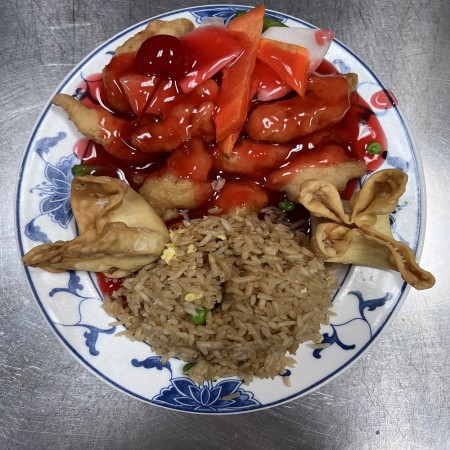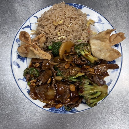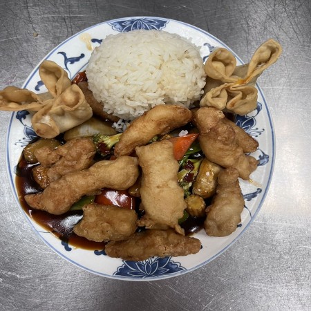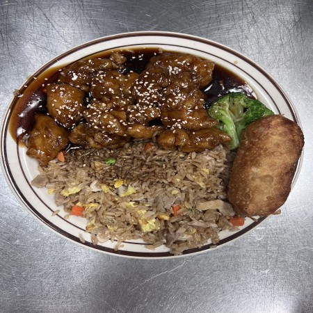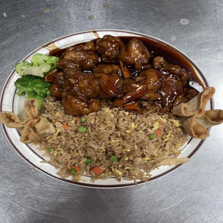 Served with Chicken Fried Rice or White Rice and an Egg Roll or a Crabmeat Rangoon