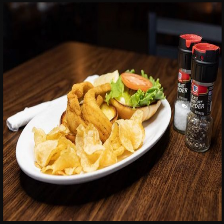 All sandwiches are served with kettle chips. Substitute slaw for no extra charge or fries $3.50 extra. Gluten free bun $3.00 extra.