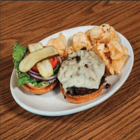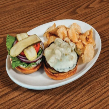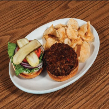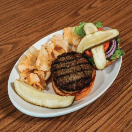 All (except for the Chimi Burger) come dressed with lettuce, mayo, tomato, pickle, red onion and served with kettle chips