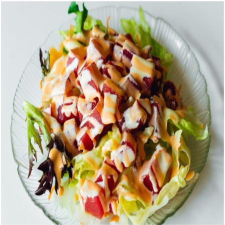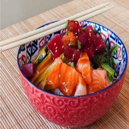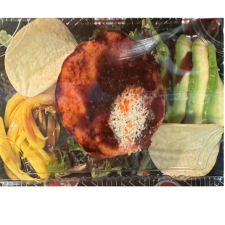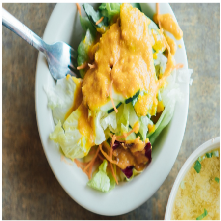 Served with soup and salad- contains raw ingredients