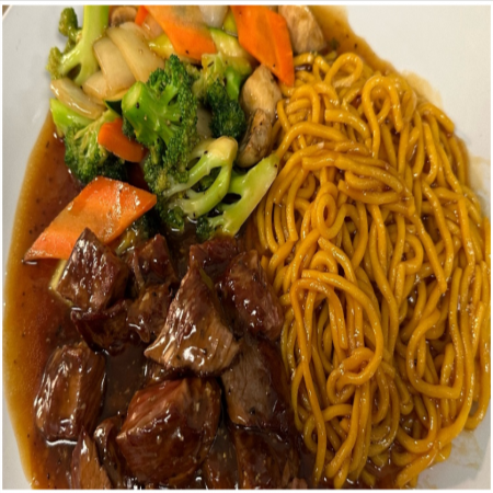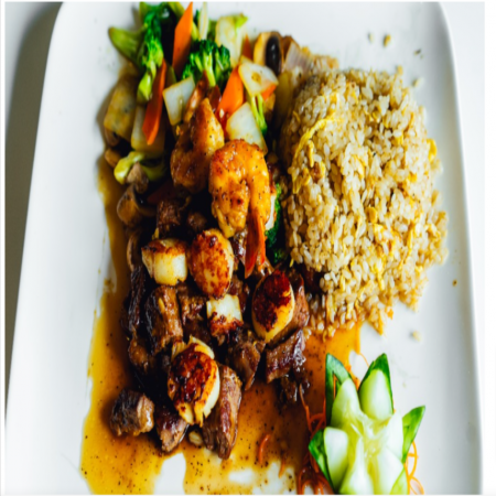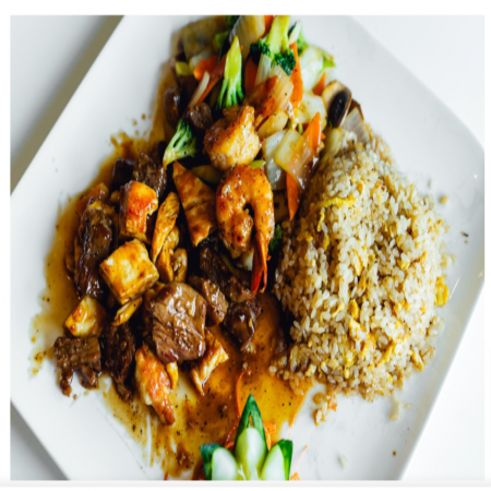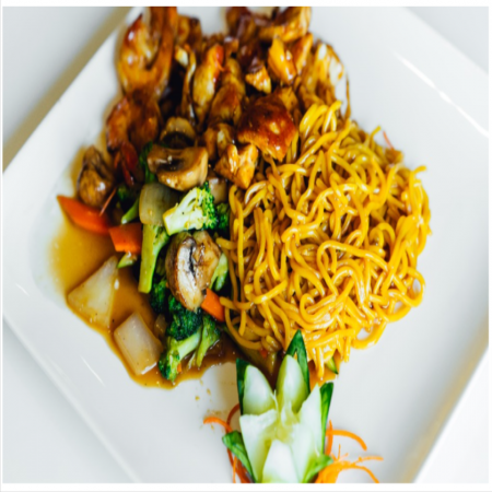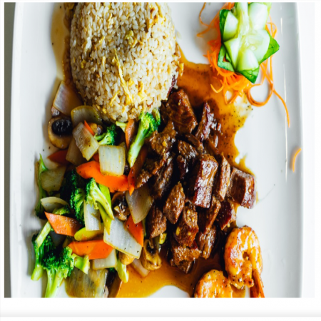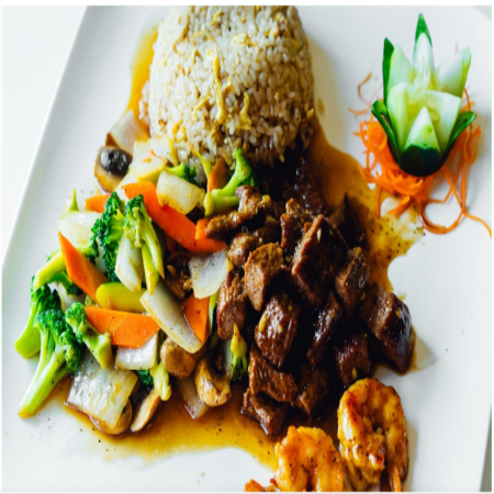 Served with Miso or Mushroom Soup, House Salad, two (2) pieces of shrimp, vegetables and fried rice or noodles