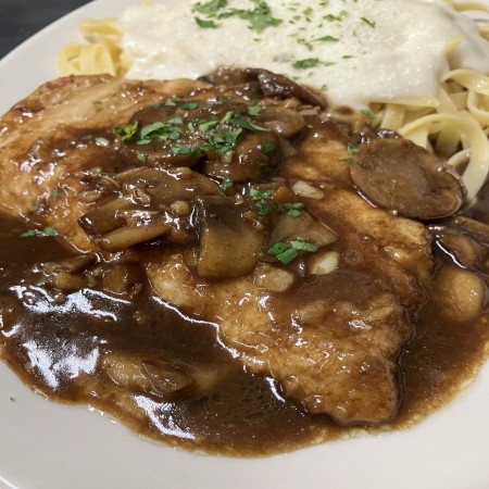 Entree served with salad and bread