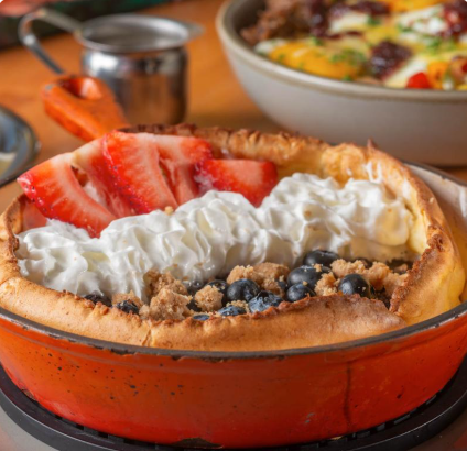 The love child of a pancake, crepe and a popover served warm. Sweet or Savory. Served daily until 2:30 pm